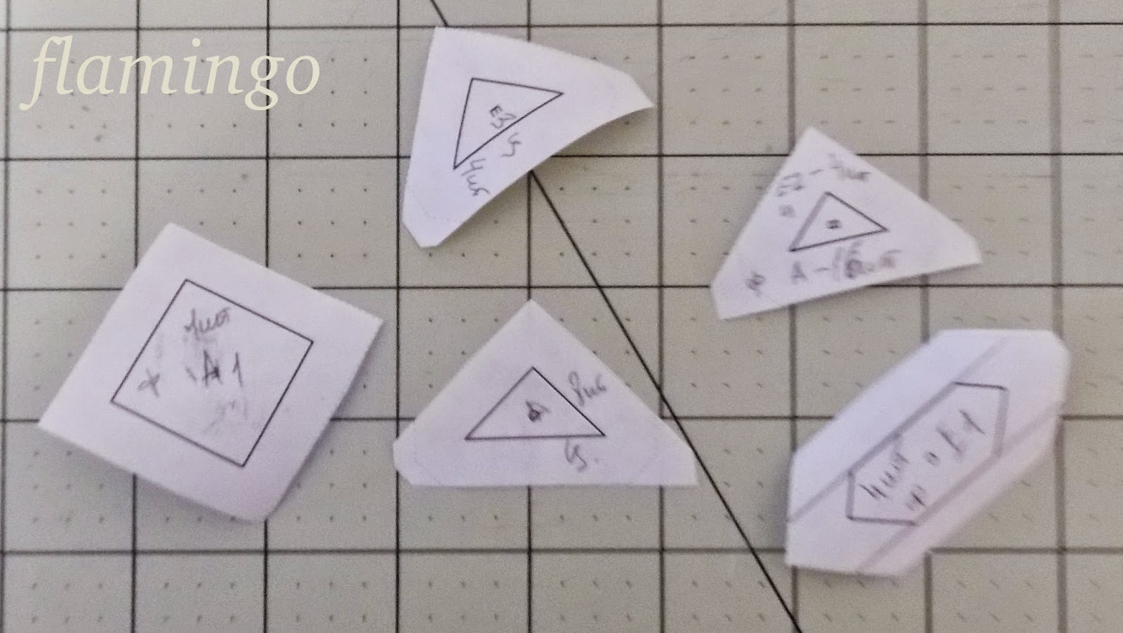 - 2 1/4"-квадраты - 3шт.(один разрезать по обеим диагоналям, два - по одной диагонали)